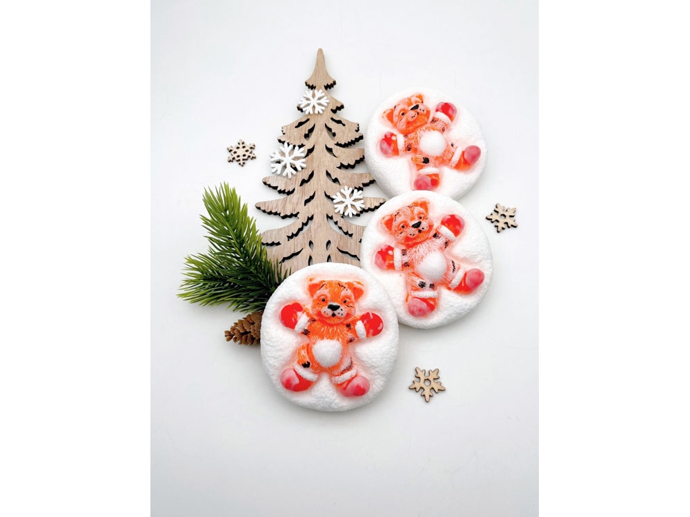 Превосходное мыло ручной работы в форме веселого тигренка на снегу. Каждый тигренок по-своему уникален. Поставляется в прозрачном пакете с бечевкой, который можно забрендировать стикером с дизайном заказчика.