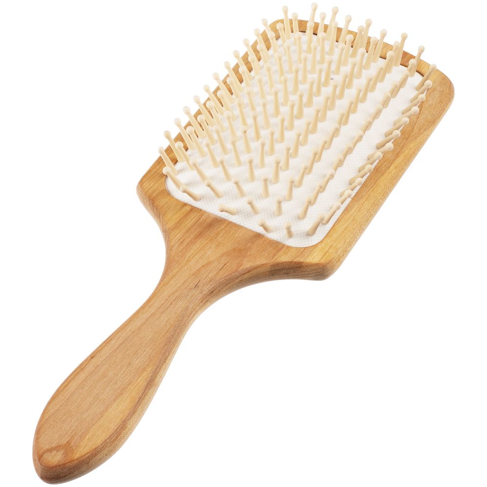 Массажная расческа Vihri из карельской березы с закругленными деревянными зубцами обеспечивает бережное расчесывание волос любой длины. Натуральный материал не дает жирным волосам засаливаться, а сухим — сечься и ломаться, нейтрализует статическое электричество, приглаживает чешуйки и усиливает естественный блеск.