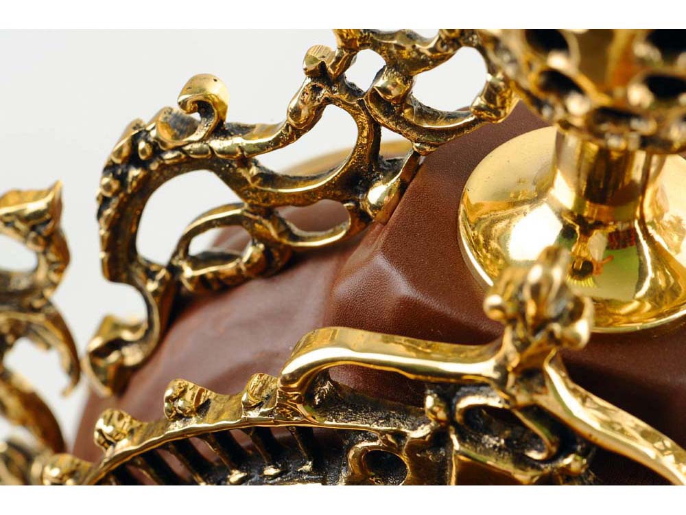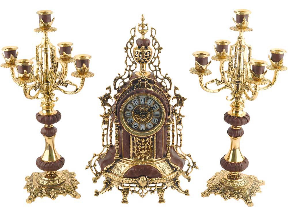 Такого еще никогда не было. То, что придумали дизайнеры удивительной испанской фирмы Virtus, поистине уникально. Они соединили благородную бронзу и натуральную кожу. Эффект превзошел все ожидания. Очередь на изделия из коллекции Испанские Гранды растянулась на 9-11 месяцев. Мы честно отстояли эту очередь и теперь с гордостью представляем Вашему вниманию эту композицию, в которую вошли настольные часы и подсвечники. Сборка набора осуществляется в течение 2-х рабочих дней при наличии на складе.