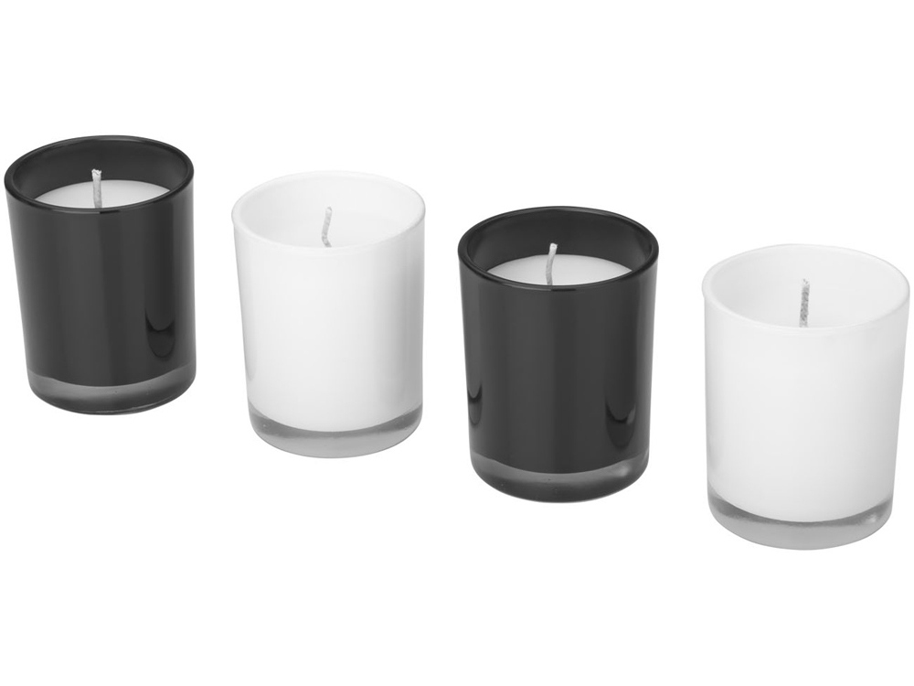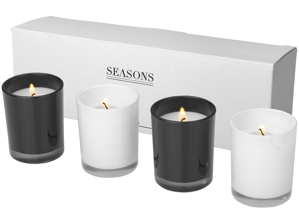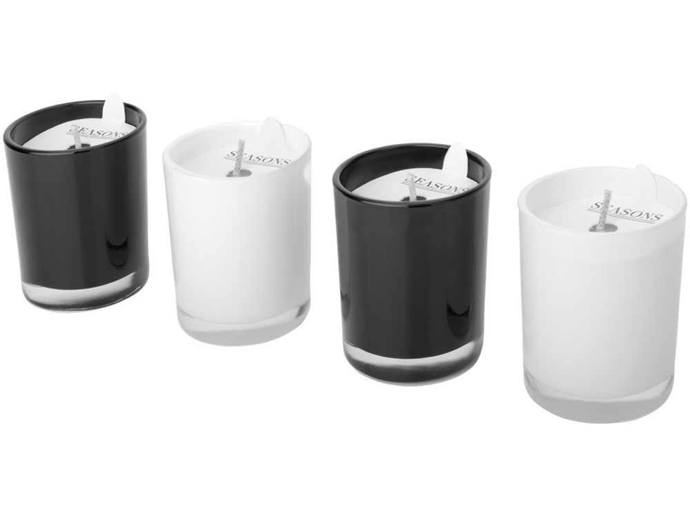Набор из 4-х свечек HIlls. Расслабьтесь и отдохните с этим набором из 4-х свечек. Свечки в черном цвете с ароматом имбиря, белые - с нежным ароматом жасмина. Время горения одной свечки составляет около 12 часов. Набор упакован в коробку Seasons. Эксклюзивный дизайн. Стекло.