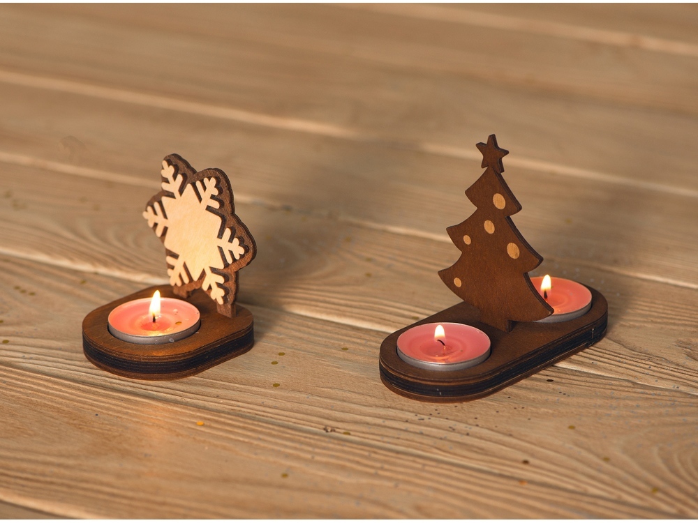 Подсвечник для двух свечей-таблеток в виде новогодней елочки. Поставляется в разобранном виде.