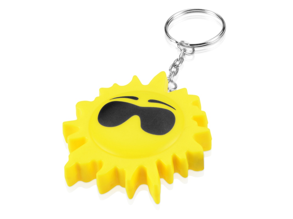 Позитивный брелок в виде солнца поднимет настроение даже хмурым, пасмурным днем. А при помощи рулетки на 1 м., спрятанной в брелок, вы легко сможете произвести необходимые замеры. Тампопечать (1 цвет (цветные изделия)) на данный товар осуществляется бесплатно. Оплачивается только настройка оборудования в размере 4000 рублей на весь тираж.