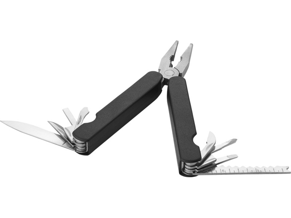 15-функциональный инструмент в чехле из полиэстера 600D. Металл и полиэстер 600D. Тампопечать (1 цвет (цветные изделия)) на данный товар осуществляется бесплатно. Оплачивается только настройка оборудования в размере 3600 рублей на весь тираж.