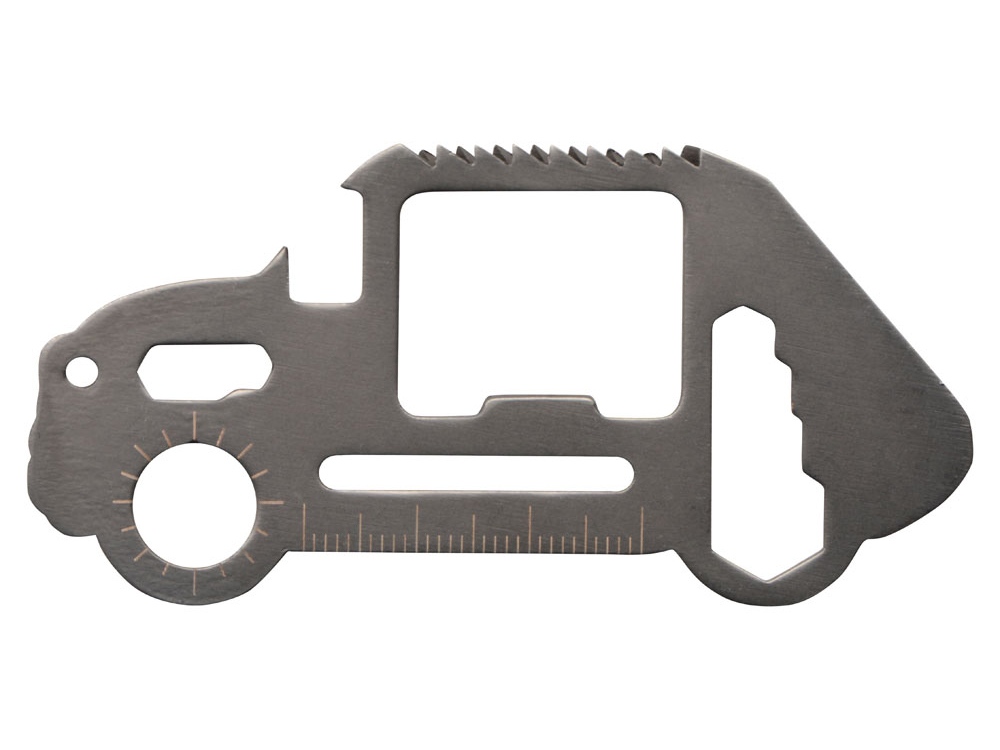 Многофункциональный инструмент-карточка, в котором 11 (Что? Да!) функций. Мультитул выполнен из нержавеющей стали, прекрасно подойдет для подарка автовладельцу и станет отличным мерчем компании, связанной с авто или логистикой.