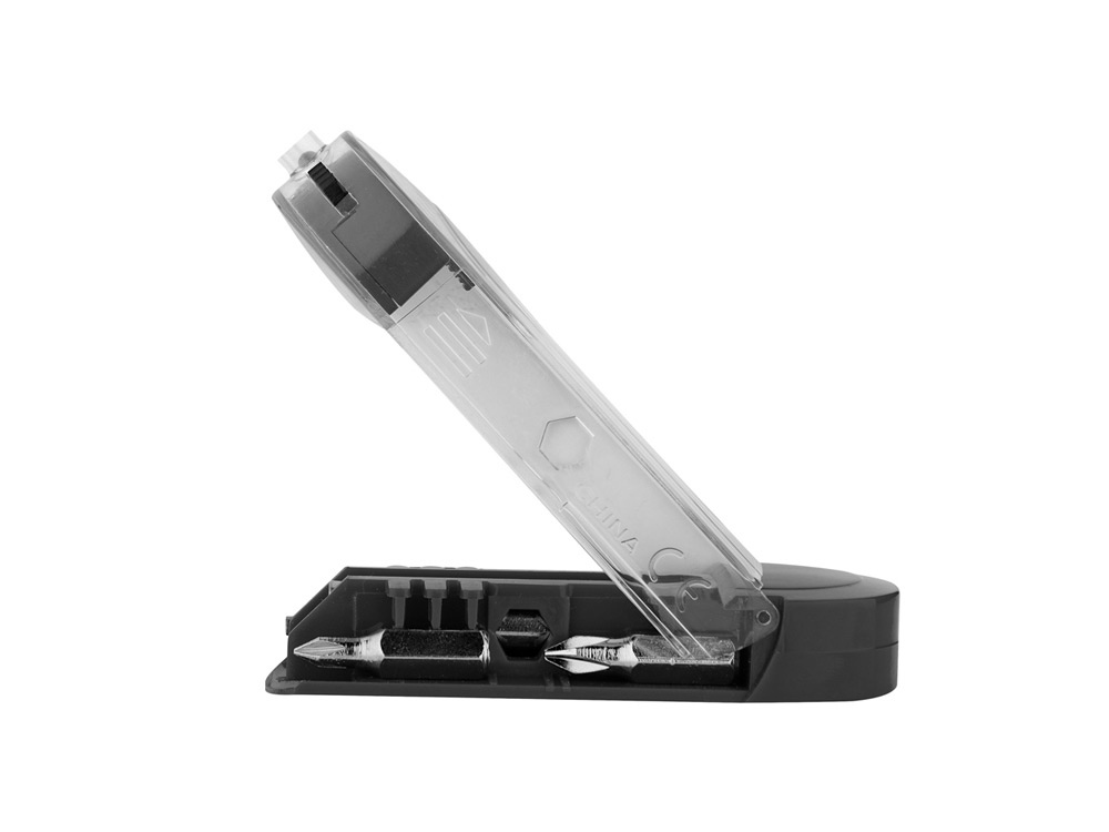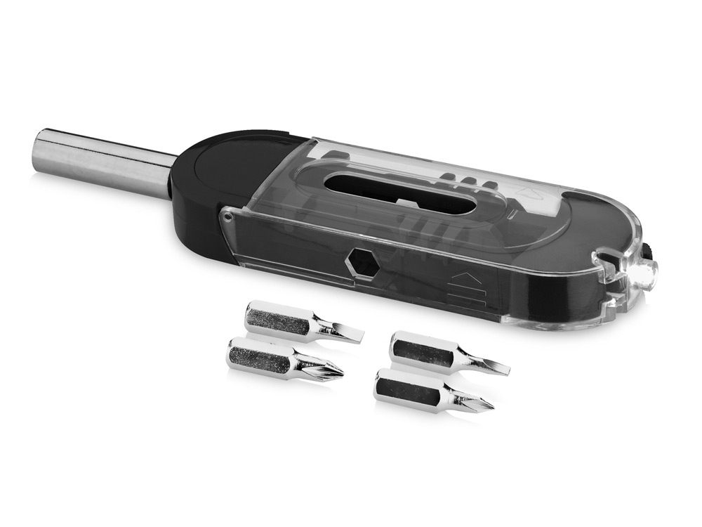 5-функциональный инструмент Solcore. 2 плоские насадки, 2 крестообразные насадки, магнитное основание в удобном контейнере для двух держателей насадок и белый светодиод с кнопкой вкл/выкл. Тампопечать (1 цвет (цветные изделия)) на данный товар осуществляется бесплатно. Оплачивается только настройка оборудования в размере 3600 рублей на весь тираж.