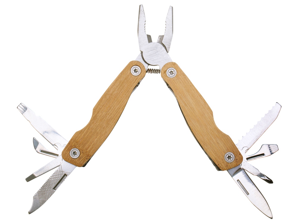 Компактный мультитул на каждый день с корпусом из бамбука. Поставляется в коробочке с чехлом.