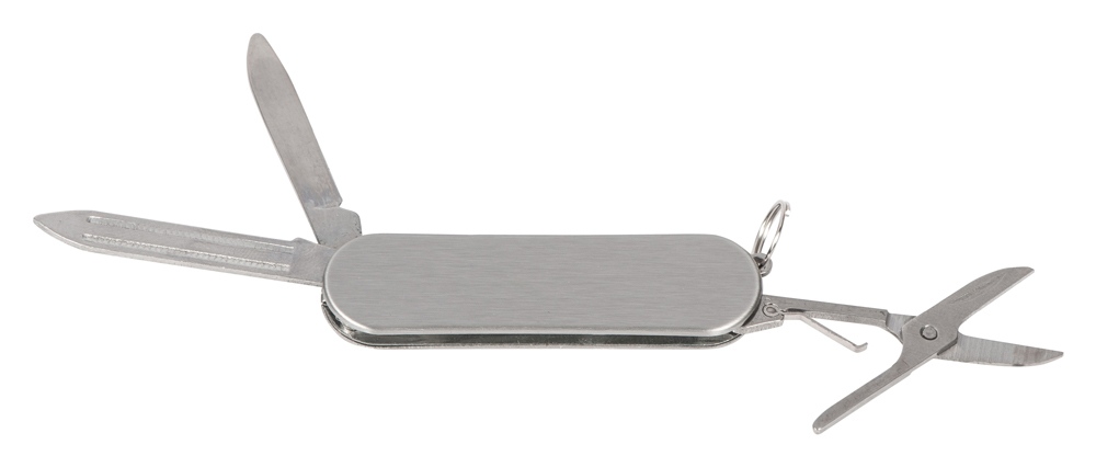 Компактный складной мультитул, в котором несмотря на его маленький размер, целых три функции: нож, пилка для ногтей, ножницы. Корпус и функциональные части выполнены из нержавеющей стали. Небольшой вес позволяет использовать в качестве брелка, чтобы он всегда сопровождал вас и мог прийти на помощь в любой ситуации.