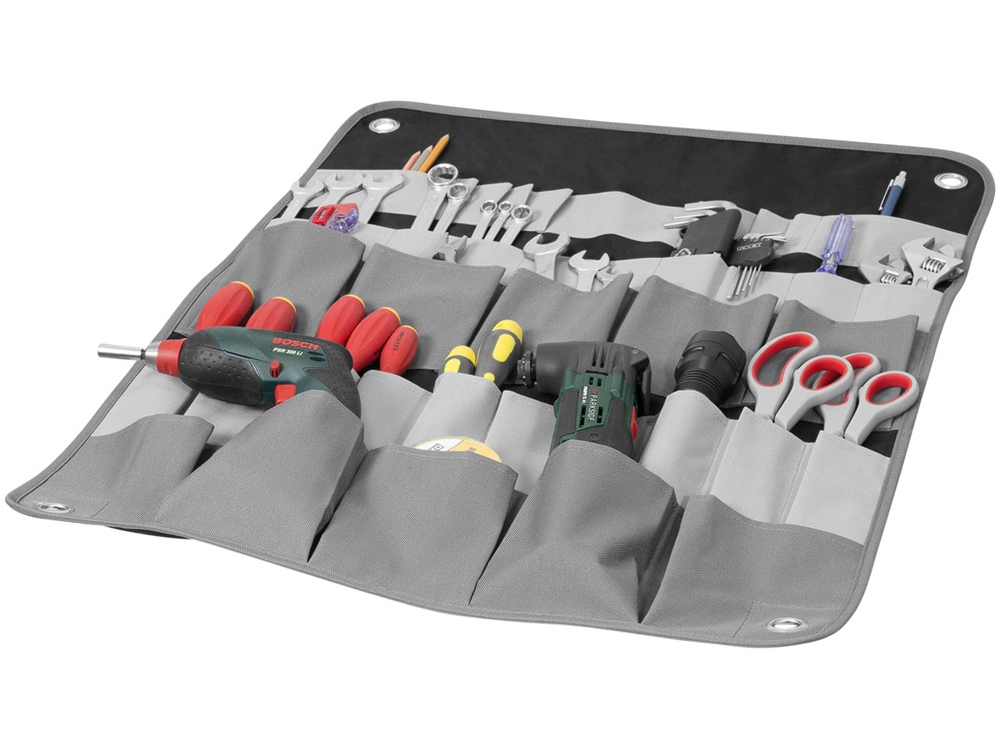 Органайзер для инструментов. Прочный и крепкий органайзер отлично крепится к столу или на стену. Множество карманов для различных инструментов. Термотрансфер (1 цвет (цветные изделия)) на данный товар осуществляется бесплатно. Оплачивается только настройка оборудования в размере 8700 рублей на весь тираж.