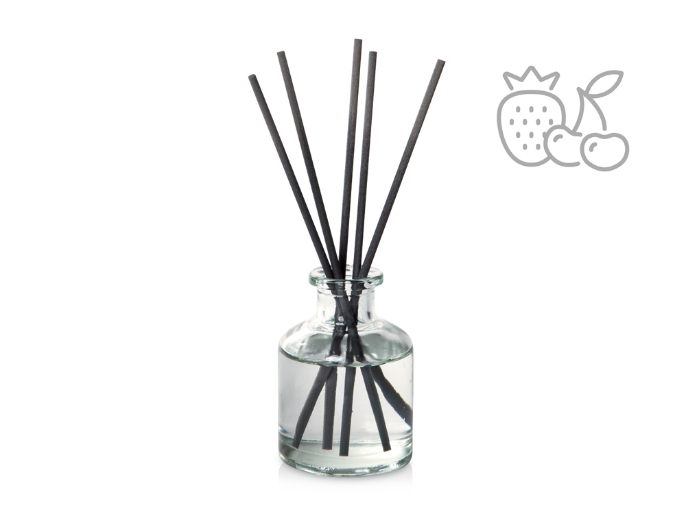 Объём диффузора 50 мл. Его будет достаточно для умеренного поддержания аромата в комнате до 15м2 в течение двух месяцев использования. Насыщенность аромата регулируется количеством используемых фибровых палочек.
