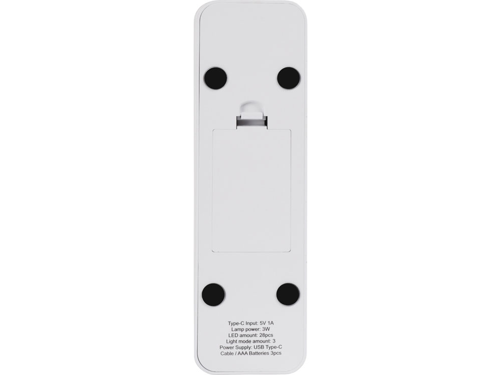 Ультра-портативная лампа на основе LED-элементов освещения с питанием от двух видов источников - USB или батареек. Спрятанные в стойки ножки дополнительно позволяют использовать лампу в качестве подставки для телефона. Лампа оснащена сенсорным включателем - с помощью легкого нажатия можно выбирать один из трех уровней яркости. Легко складывается, принимая компактный размер. Большая зона для декорирования. Питание либо от USB источника, либо от 3-х батареек ААА. Кабель USB Type-C в комплекте. Внимание, на изделии возможно наличие пятен и наплывов пластмассы. В связи с этим цена на товар снижена, претензии, связанные с наличием указанных дефектов, не принимаются.