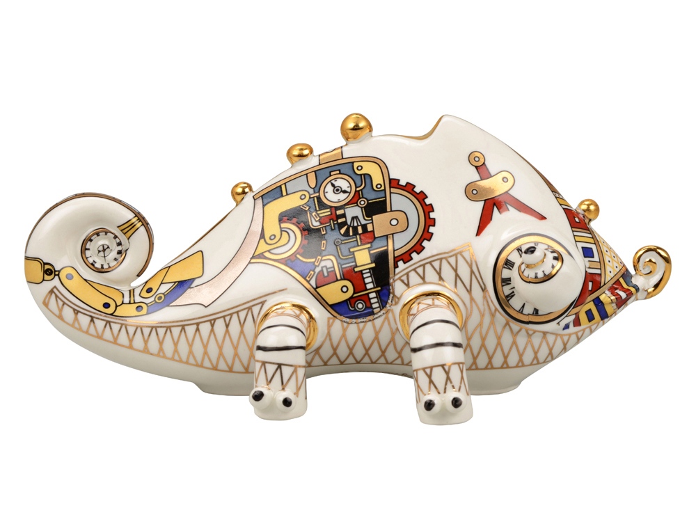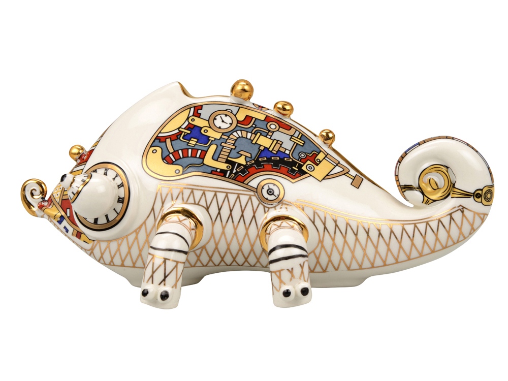 До символического значения хамелеона несложно догадаться. Хамелеон символизирует способность подстраиваться под любые жизненные обстоятельства и везде чувствовать себя своим. Скульптура Хамелеон” - это великолепный символический подарок с уникальной ручной росписью, выполненный в стиле стимпанк. Представьте себе мир, где паровые машины и другие ретро-технологии не исчезли, а достигли высочайшего развития. Так и выглядит стимпанк!