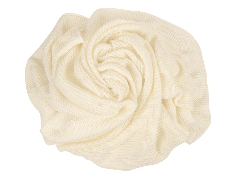 Плед, связанный из прочной акриловой пряжи, согреет в любую погоду.