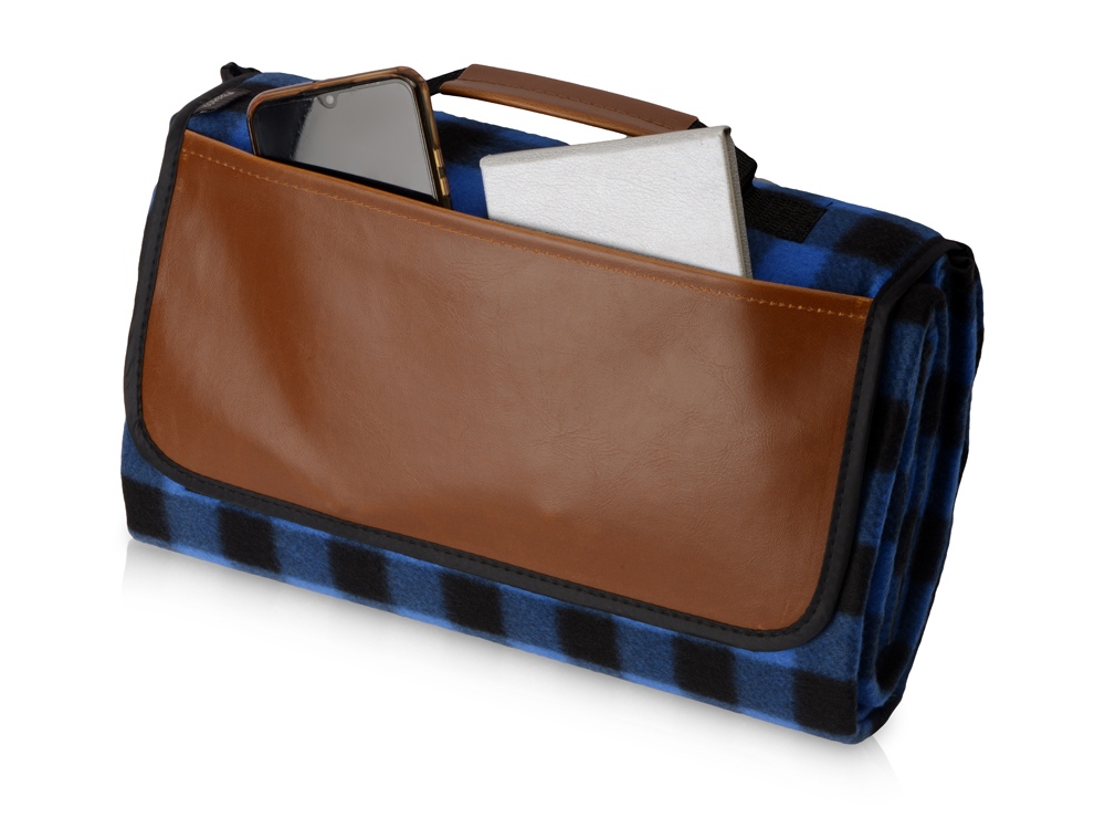 Мягкий и плотный плед не пропускает влагу благодаря непромокаемой подкладке. Для удобства использования предусмотрена ручка для переноски и карман на лицевой стороне для хранения мелочей или гаджетов размером 27 х 11 см. Тиснение (Блинт) на данный товар осуществляется бесплатно. Оплачивается только настройка оборудования в размере 6200 рублей на весь тираж.