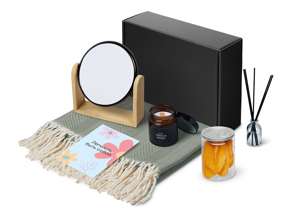 Re:f. Shelter — о чувстве защищённости и тихом пространстве для себя. Укутайтесь в плед, зажгите свечу, пусть диффузор наполнит комнату мягким ароматом — так создаётся настроение покоя и уюта. Зеркало становится маленькой деталью внимания к себе, а сушёное манго добавляет солнечную, тёплую нотку, напоминая о простых радостях. Этот набор — про личное укрытие, где можно выдохнуть, замедлиться и просто побыть в моменте. Внимание! Фактический форм-фактор коробки отличается от представленного на фото. Коробка выполнена в вертикальном формате (с вертикальным открыванием).При этом габаритные размеры изделия полностью сохранены. Изображения продукции на сайте представлены в качестве примера и содержат элементы дизайна, которые не являются частью поставляемого изделия.