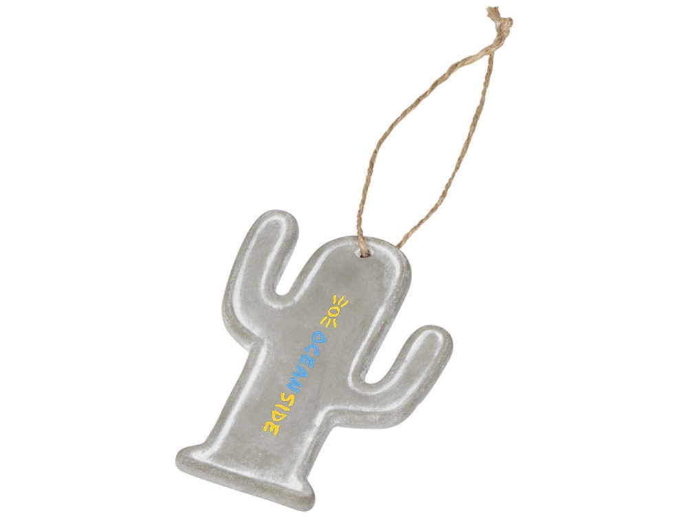 Сезонное украшение с кактусом. Украшение с кактусами на веревке для легкого декорирования. В комплект включена черная подарочная коробка. Бетонное украшение с пеньковой веревкой.