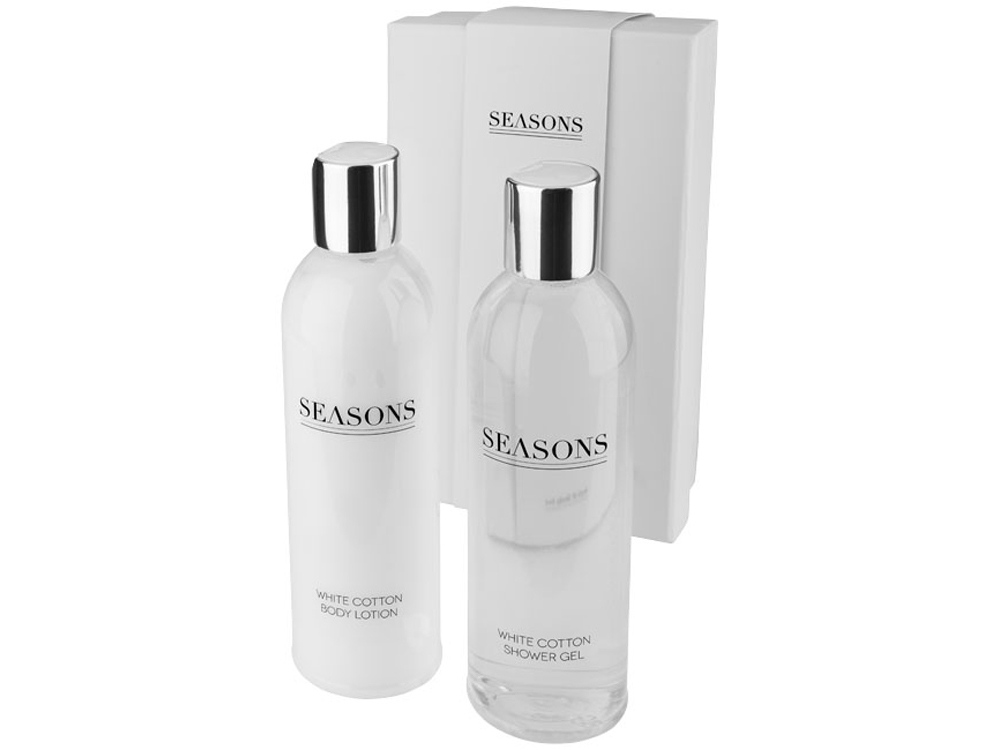 Банный набор Alden от Seasons. В набор входят: гель для душа 250мл, лосьон для тела 250 мл. поставляется в фирменной подарочной упаковке Seasons. Эксклюзивный дизайн. Тампопечать (1 цвет (белые изделия)) на данный товар осуществляется бесплатно. Оплачивается только настройка оборудования в размере 3600 рублей на весь тираж.