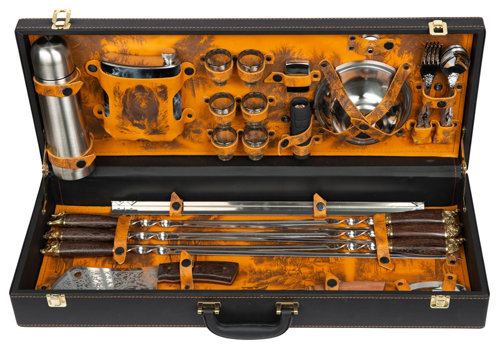Мангал - 1 шт. Внимание, конфигурация изделия, дизайн комплектующих и сюжет художественного выжигания на коже могут отличаться от представленных на фото. Ручная работа. Каждое изделие уникально и может иметь индивидуальные особенности исполнения.