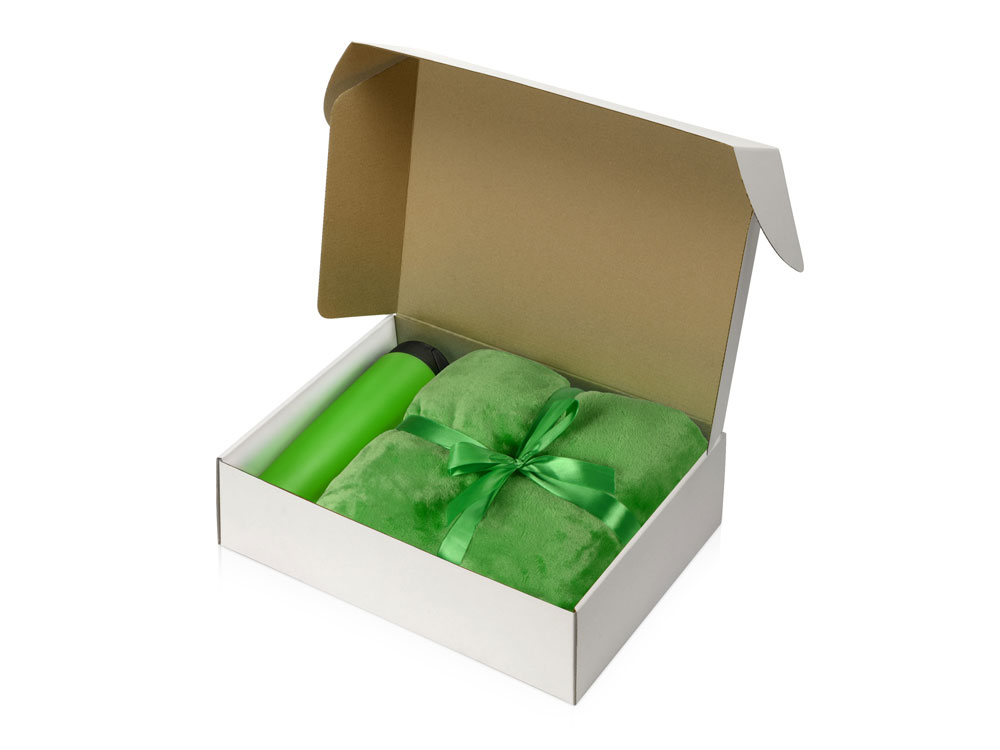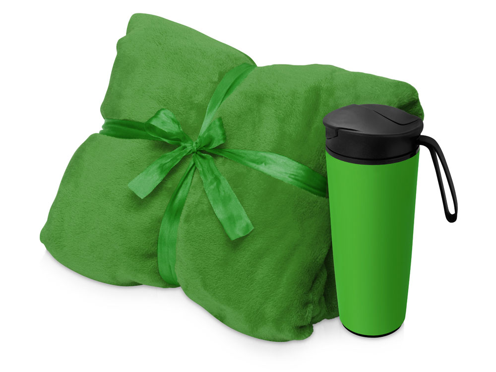 Цвет—плед- зеленый, термокружка- зеленый/черный