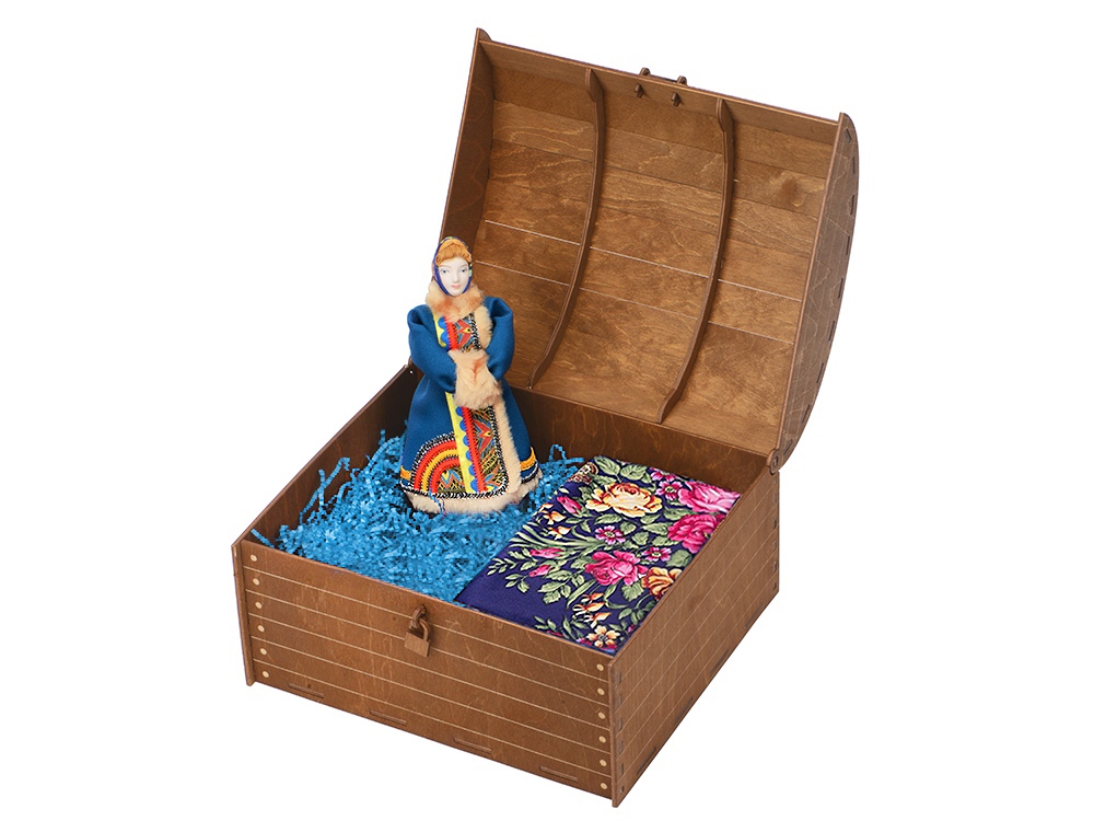 Умопомрачительный набор в русском народном стиле включает в себя прекрасную интерьерную куклу и яркий платок. Набор станет отличным подарком для ценительниц русской культуры. Внимание, узор на платке и цвет наполнителя в сундуке могут отличаться от представленного на фото. Сборка набора осуществляется в течение 2-х рабочих дней при наличии на складе.